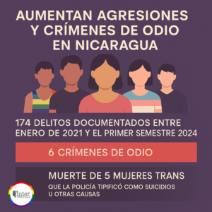 Según estadísticas del Observatorio de Violaciones a los Derechos Humanos de Personas LGBTIQ+, solo entre 2021 y el primer semestre de 2024 se documentaron 174 delitos contra personas de la diversidad sexual en Nicaragua.